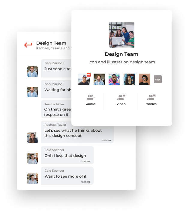 Get started on new ideas, projects and group efforts in a truly engaging way with instant chat, audio and video calls.